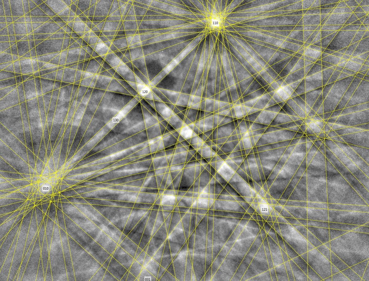 EBSD 装置と EDS 装置を統合し、SEM 上の適切なジオメトリに設置すれば、サンプル表面の未知の結晶相にビームを当て、EBSP と EDS のスペクトルを同時に取得可能です。このシステムは、利用可能な結晶構造データベースを検索し、EDS 定量から決定される結晶相の化学的性質と一致するエントリーを探すことができます。候補となる結晶相の短いリストが返されます。その後、このリストに基づいて EBSP のインデックスを作成し、結晶相を特定します。